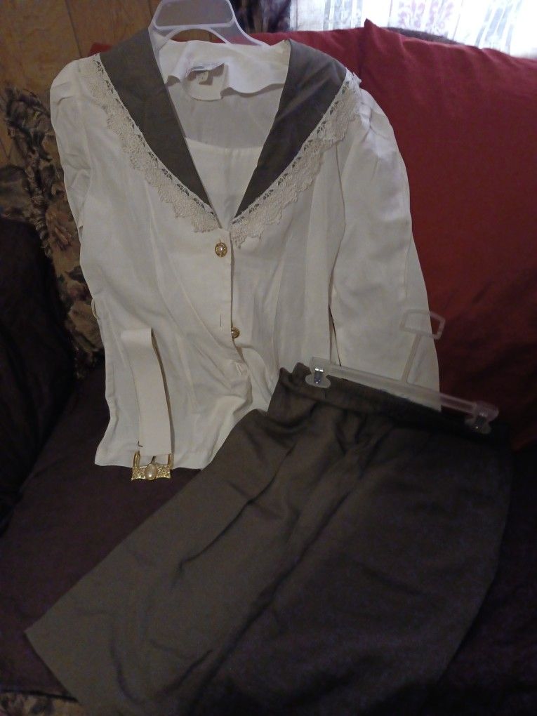New LADIES SET OF BLOUSE WBELT AND FOREST GREEN SKIRT $20 MED