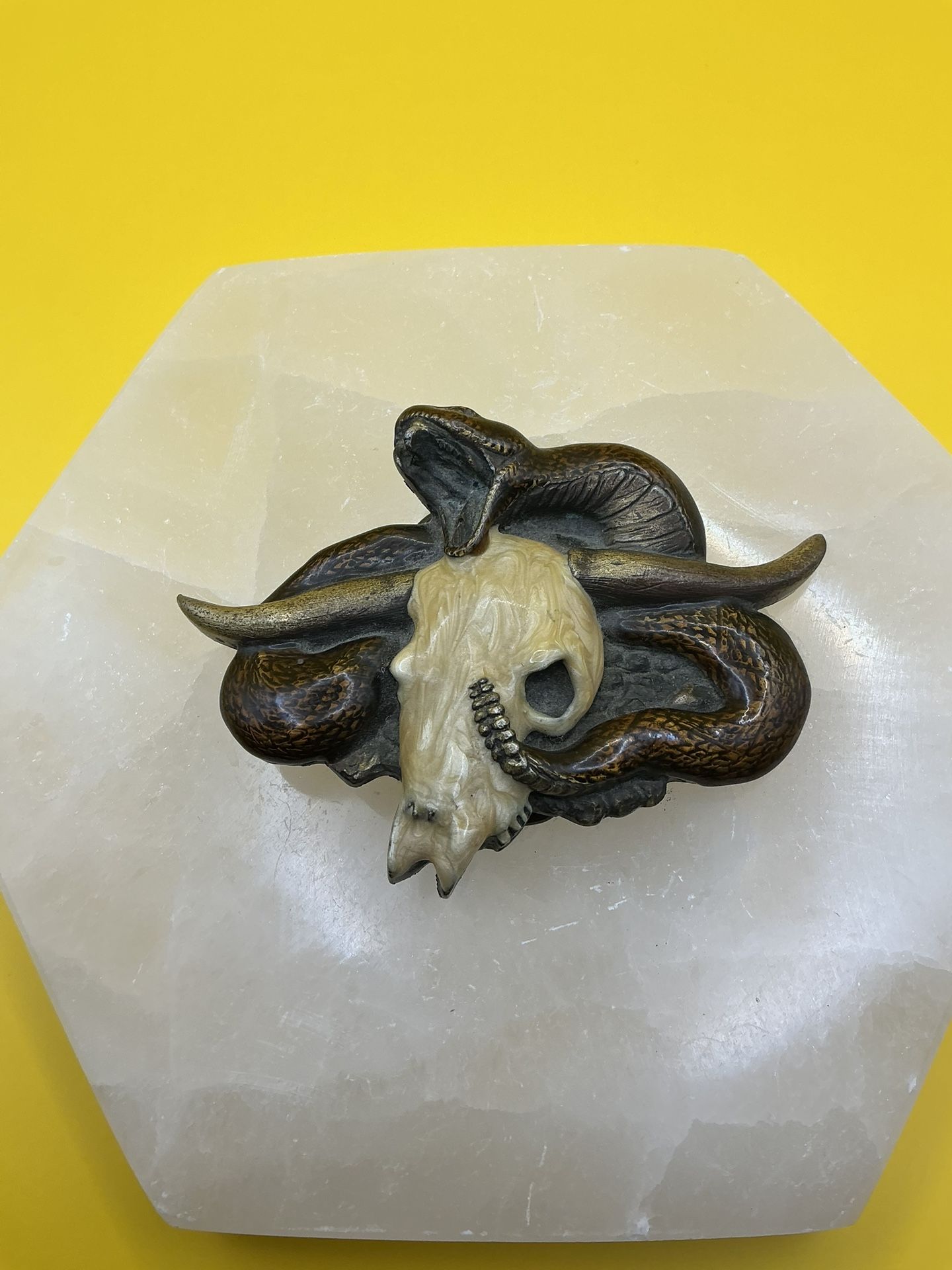VTG Bull Skull & Rattlesnake Western Belt Buckle Made in USA
