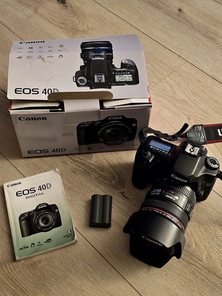 Always a workhorse, Canon EOS 40D is a solid camera that consistently holds up. 24-70mm lens w/hood, battery and the original box and instruction manual are also included. Ready to go shooting as soon as you pick it up! We'll taken care of & cleaned regularly. The Canon EOS 40D is a 10.1-megapixel APS-C "prosumer" DSLR known for its robust magnesium alloy body, fast 6.5 fps continuous shooting, and 9-point cross-type AF system. Sensor: 10.1 MP APS-C CMOS Autofocus: 9-point, all cross-type AF system ISO Range: 100-1600 (expandable to 3200) Continuous Shooting: 6.5 frames per second LCD Screen: 3.0-inch Lens Mount: EF/EF-S Build: Magnesium alloy chassis with weather sealing.