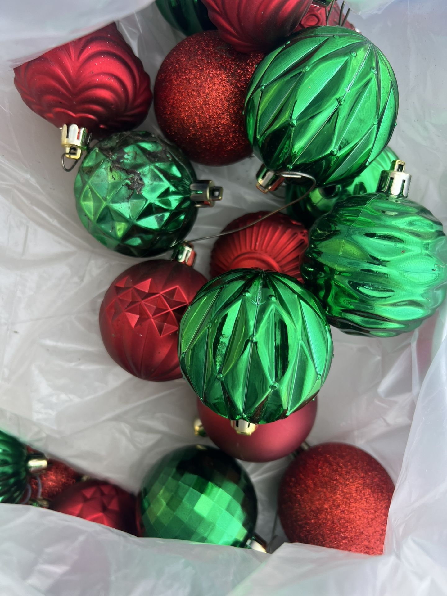 1 bag of green and red ornaments
