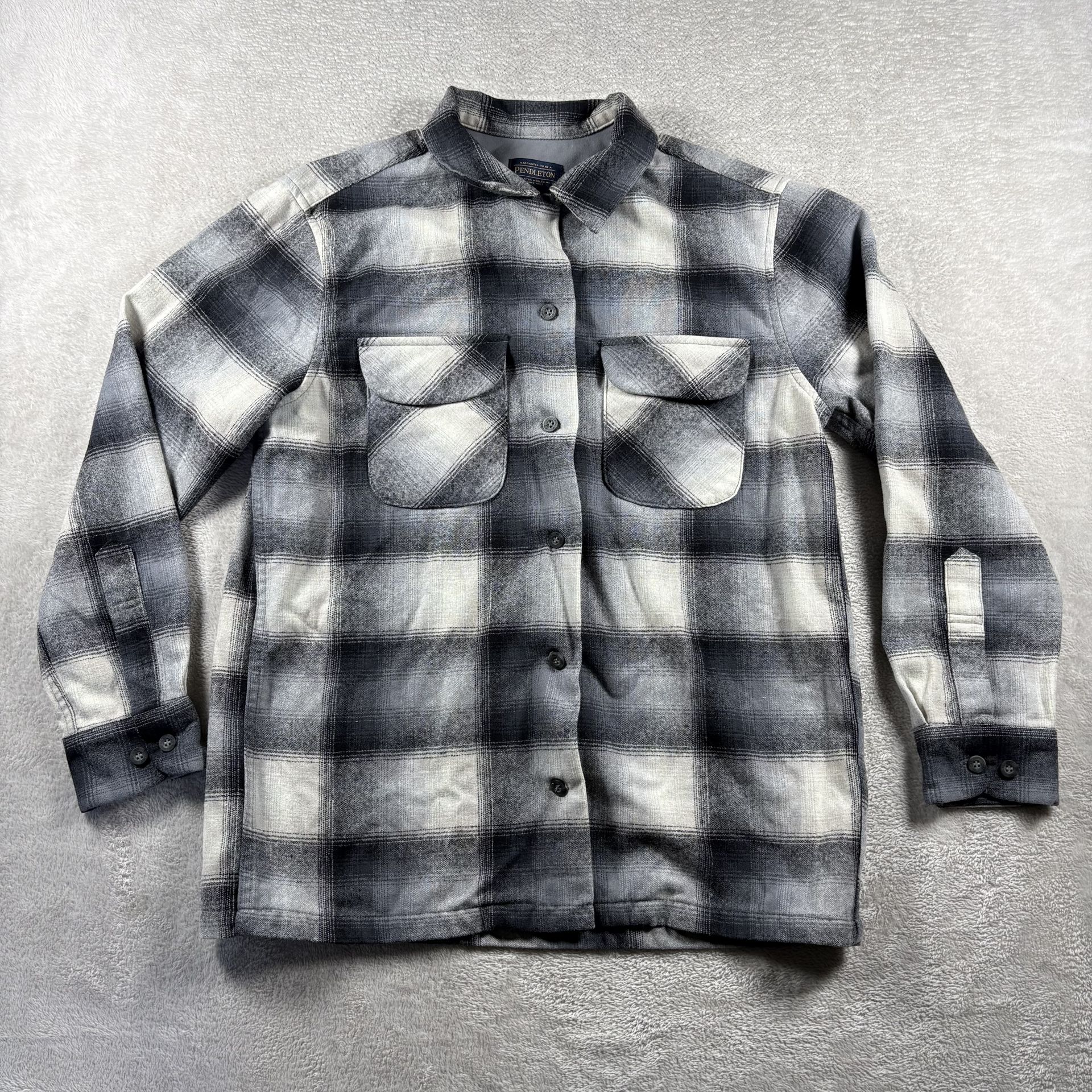 Pendleton Men’s S Gray Black Plaid 100% Virgin Wool Shirt Button #1960