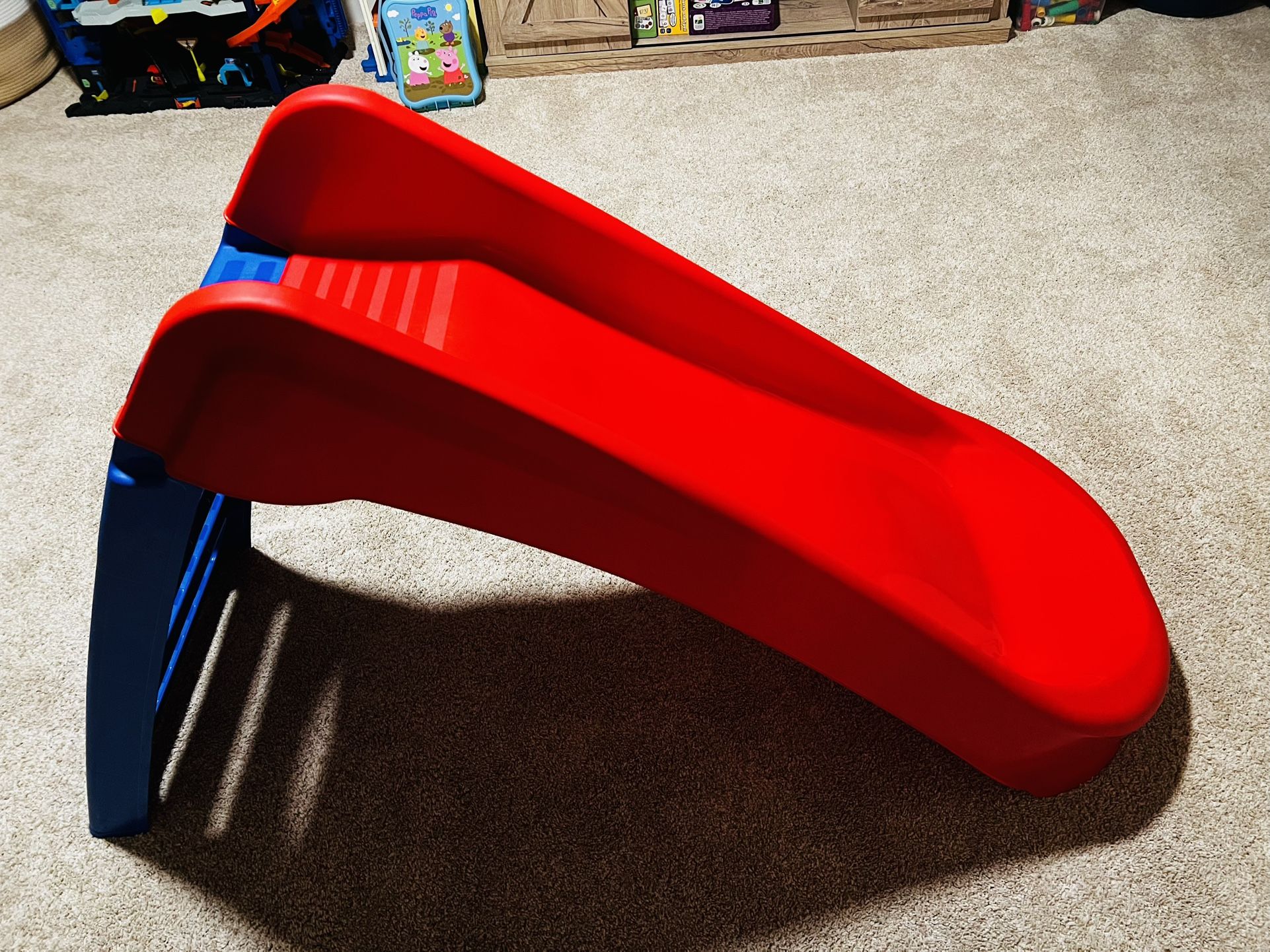This slide is in great condition. It was played with inside the home only. The slide can be easily folded in 1 step. PalPlay Fun n Fold Junior Slide Dimensions: 51.8w x 28.35h x 18.5d