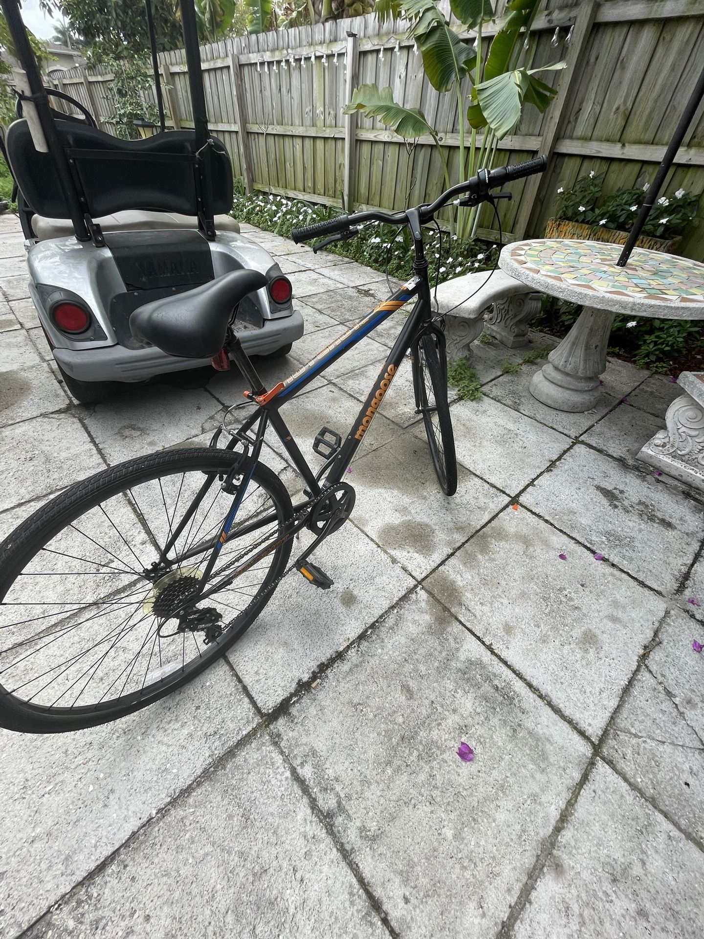 Mongoose hotshot bike works great and a little piece of the front broke off but still has no issues trading too if trading I’m looking for a mountain bike