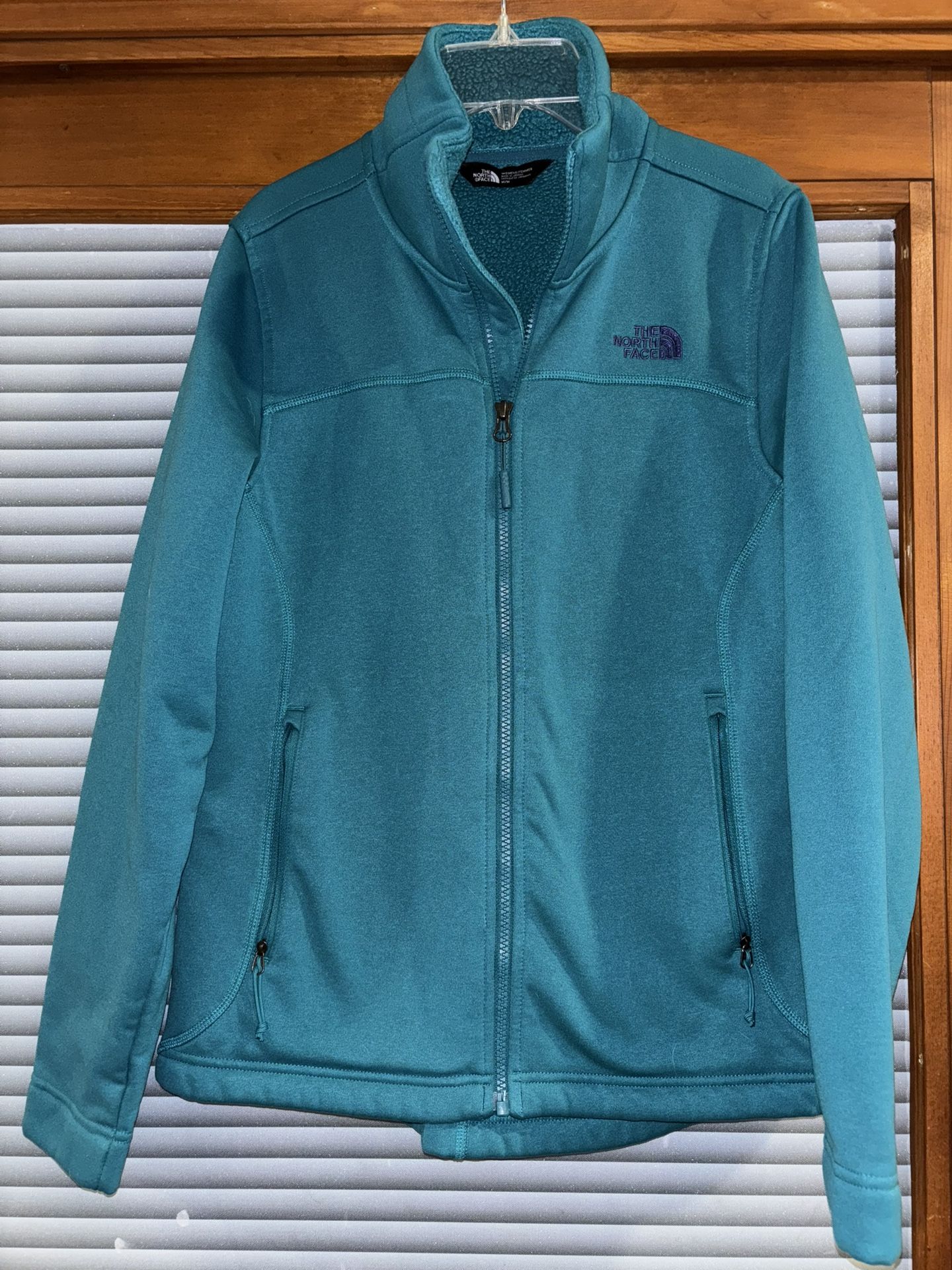 The North Face Sz M Teal Blue Timber Full Zip Soft Shell Fleece Lined Jacket