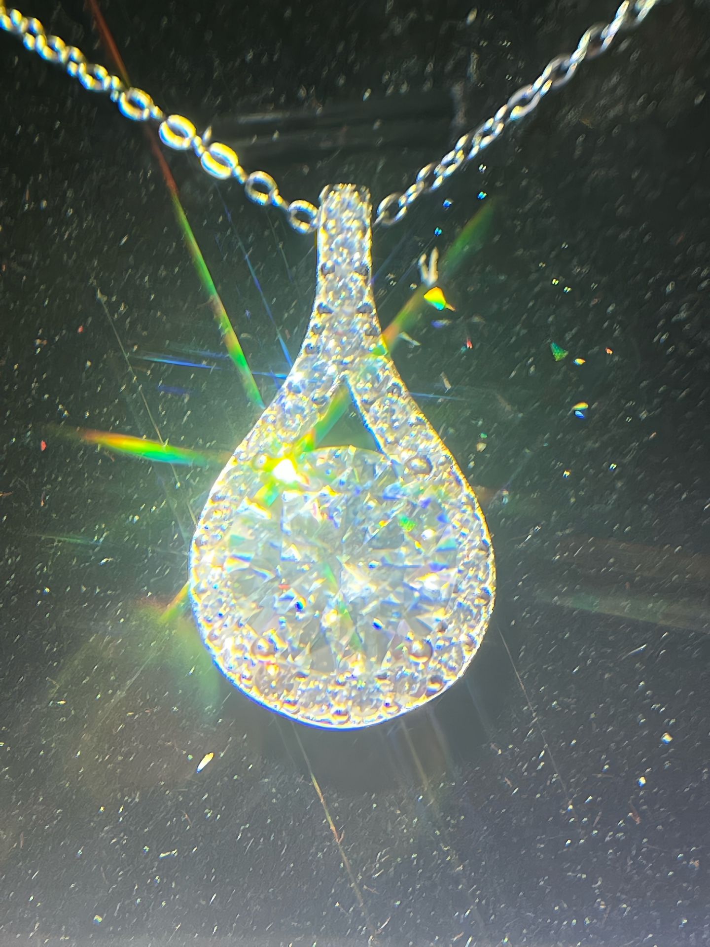 Certified 4ct Round Moissanite Pendant with 1mm Moissanite mosaic around,925 Solid Sterling Silver 18k white gold filleded pendant and chain necklace Materials: Silver/white gold Gemstone: 4Ct (10.20mm) Moissanite Description Simply Stunning Ladie's moissanite stone solitaire pendant necklaces! Best hearts and arrows cut stones. stamped 925 Solid Sterling Silver 18k white gold filleded pendant and chain necklace.This exquisite necklace has high polished rhodium finish that gives it a stunning shiny look that lasts for many years. Excellent Cut VVS D Color Moissanite Stone