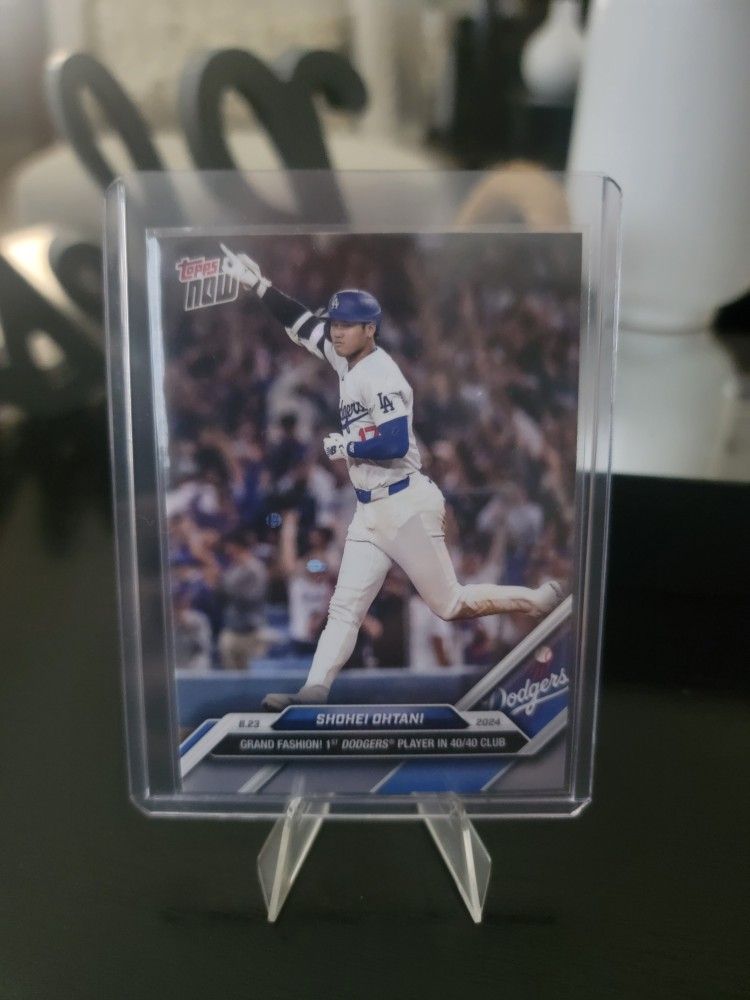 Topps now shohei ohtani 1st dodgers player with 40 home runs and 40 stolen bases. Get a piece of baseball history with this 1 of a kind card.