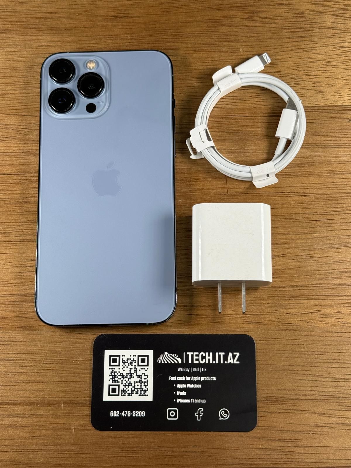 📱 iPhone 13 Pro Max | 256GB | Sierra Blue | Unlocked (Any Carrier) Hablo Español | Liberado | Cualquier Compañía ⭐️5 Star Trusted Seller ✅ Clean IMEI ✅ Face ID ✅ True Tone ✅ 14 day warranty 🔋 85% Battery Health 📋Feel free to test your SIM card and phone before buying. 🔌*Add a charger for $10 more. Price is firm 📦Ask us about Wholesale opportunities 📦 Ofrecemos venta por mayoreo 📲 Trade ins are welcome for any carrier status and phone condition! 💰We pay cash for phones 💵 Compramos iPhones *81718
