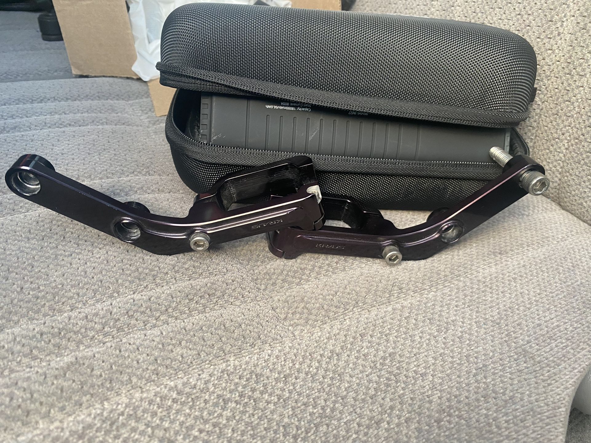 Kraus shock external reservoir mounts for Ohlins piggyback shocks on Harley touring bagger models