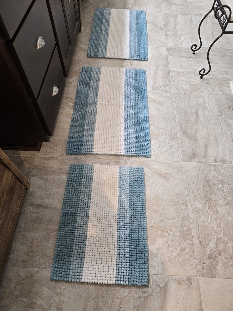 Soft Polyester Bathroom Mats Manufacturer - Mind on Design 2 large mats - 33.5" x 21.5" - ( $12 each ) 1 small mat - 24" x 18" - ( $10 ) All 3 for $30