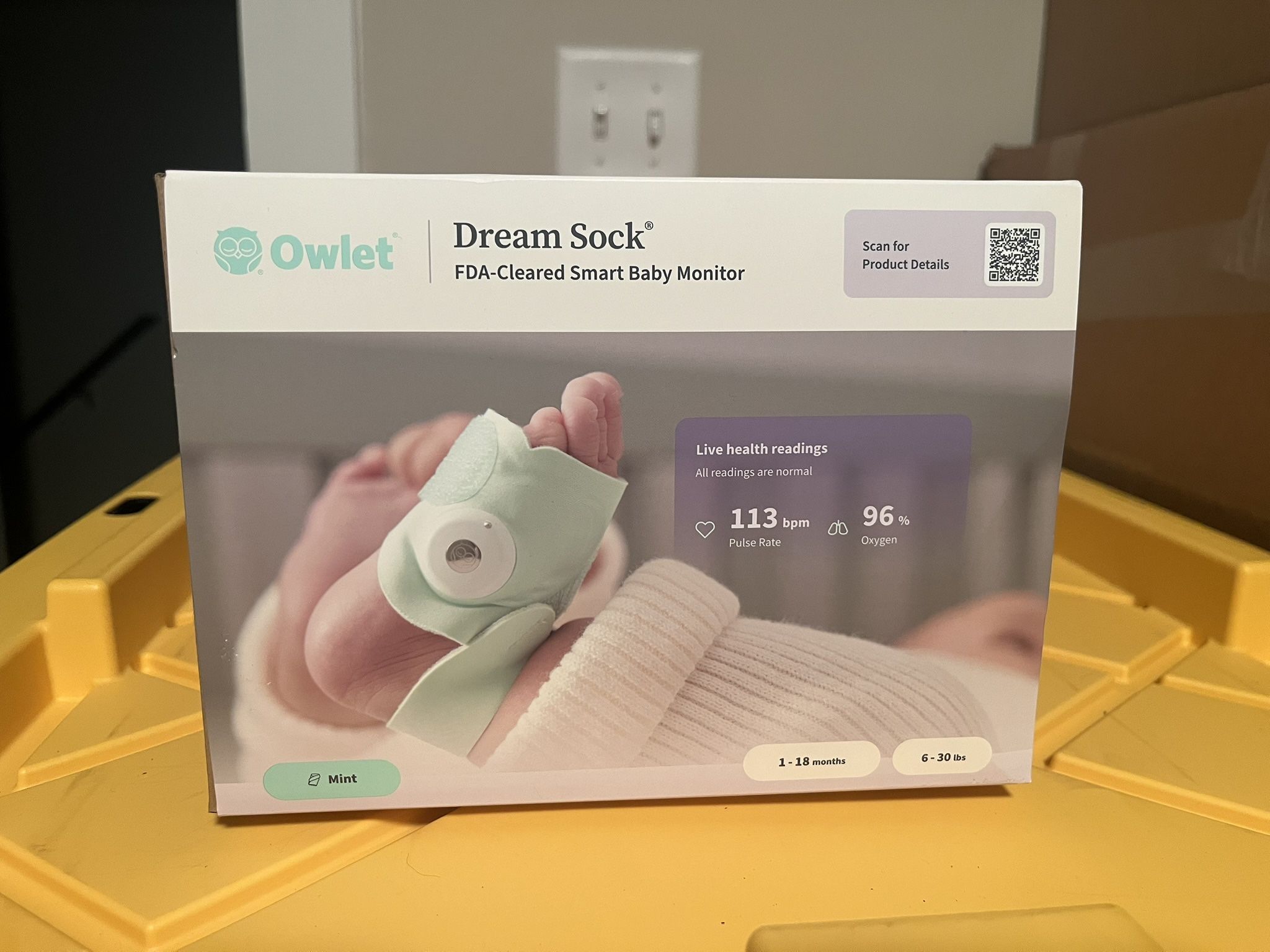 Used only once. Owlet Dream sock in mint. All the parts and extra socks are in the box.