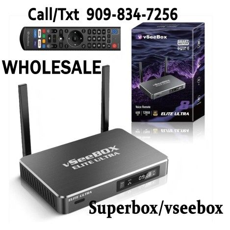 All-New Superbox S7 Max S7 Pro Superbox S6 Pro Max Ultra VSEEBOX ELITE ULTRA VSEEBOX V6 PLUS VSEEBOX V6 Max VSEEBOX V3 PLUS VSEEBOX ELITE MINI Experience next-level entertainment with our most powerful device ever. Featuring 6K resolution and the lightning-fast Cortex-A53 processor. Local pickup in Baldwin Park Ca!! Available with Lowest prices and price match guaranteed. Ask us about WHOLESALE prices. VSEEBOX V5 PRO 1 BOX $200 2-5 BOXES $195 UNITS 6-9 BOXES $185 UNITS 10+ BOXES $175 UNITS 20 BOXES $170 UNITS More than 20 contact us for wholesale specials New Arrival 2025 Edition 💥VSEEBOX V6 PLUS ( 6 apps multi split screen ) NEW INSTOCK 🔥 1 BOX $280 2-5 BOXES $270 UNITS 6-9 BOXES $260 UNITS 10+ BOXES $250 UNITS 20 BOXES $240 UNITS More than 20 contact us for wholesale specials New Arrival 2025 Edition 💥VSEEBOX V6 MAX NEW INSTOCK 🔥 1 BOX $250 2-4 BOXES $240 UNITS 5-9 BOXES $230 UNITS 10+ BOXES $220 UNITS 20 BOXES $210 UNITS More than 20 contact us for wholesale specials New Arrival 2025 Edition 💥VSEEBOX ELITE MINI (15 apps) - 1 unit $300 - $250 WHOLESALE PRICES 💥Vsee Elite Ultra. (21 apps) - 1 unit: $340 - Wholesale prices inquired New Arrival 2025 Edition 💥S7 PRO. 32Gb Storage - 1 unit: $190 - 2-4 units: $180 - 5-9 units: $175 - 10+ units: $175 - 20+ units: $170 - 40+ units: $160 New Arrival 2025 Edition 💥S7 Max. 64Gb Storage - 1 unit: $200 - 2-4 units: $195 - 5-9 units: $190 - 10+ units: $185 - 20+ units: $180 - 40+ units: $170 New Arrival 2025 Edition 💥S7 Ultra. 128Gb Storage - 1 unit: $220 - 2-4 units: $215 - 5-9 units: $210 - 10+ units: $205 - 20+ units: $200 - 40+ units: $180 💥S6 PRO. 32Gb Storage - 1 unit: $135 - 2-9 units: $130 - 10+ units: $125 - 20+ units: $120 💥S6 MAX. 64Gb Storage - 1 unit: $165 - 2-3 units: $160 - 4-9 units: $150 - 10+ units: $145 - 20+ units: $140 💥S6 ULTRA. 128Gb Storage - 1 unit: $180 - 2-3 units: $175 - 4-9 units: $170 - 10+ units: $150 - 20+ units: $145 💥SuperBox has 1 year manufacturers warranty 💥Store business hour💥 💥Location: 4219 alderson ave unit C. Baldwin Park 91706, CA 💥 Mon-Sun 10 AM - 5 PM, Call/Text Us Now (909)834-7256 Free Lifetime Updates: Powered by 4GB of RAM and 64GB of storage, this device is a multimedia powerhouse. Enjoy ultra-fast streaming with support for a 1000Mbps Ethernet connection, dual-band WiFi, and the latest WiFi 6 technology. Plus, the upgraded Bluetooth remote with voice command makes navigating your content easier than ever. Content - 6K Media Player - Android TV Box - Free Lifetime Updates - Home Entertainment - Online Content Don't miss out on the chance to transform your living room into an entertainment paradise. Take the plunge into the future of the SuperBox S7 Max Media Player today!