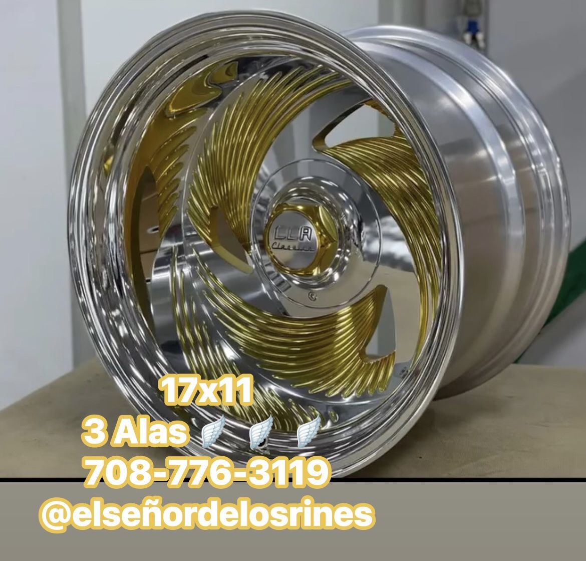 17x11 Rines 3 Alas anchos de aluminio Pulido con oro 5 Birlos Chevy Ford Dodge