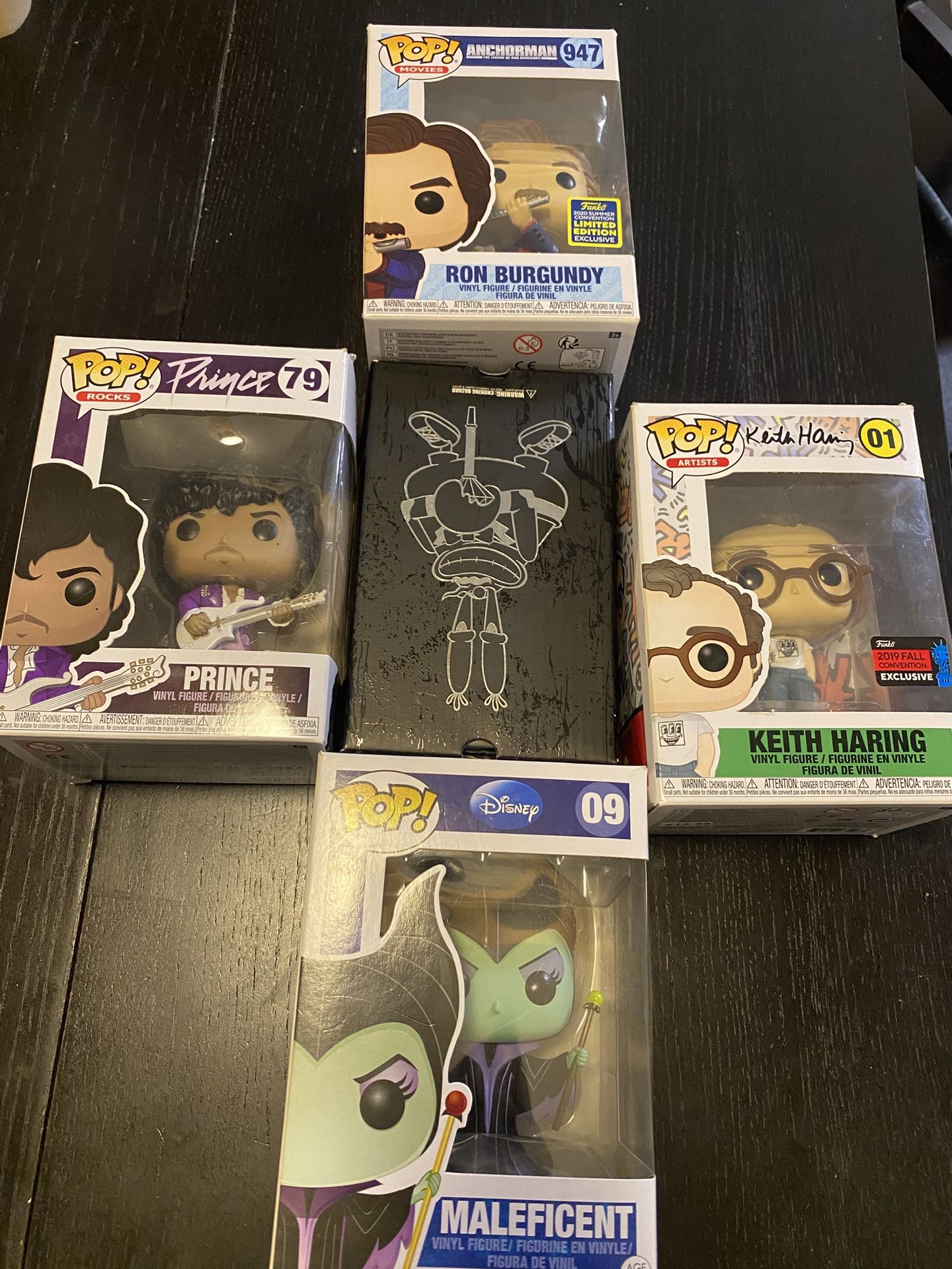 Open box like new figurines invoice Prince, Maleficent, Rob Burgandy, Keith Haring and Mr Krabz
