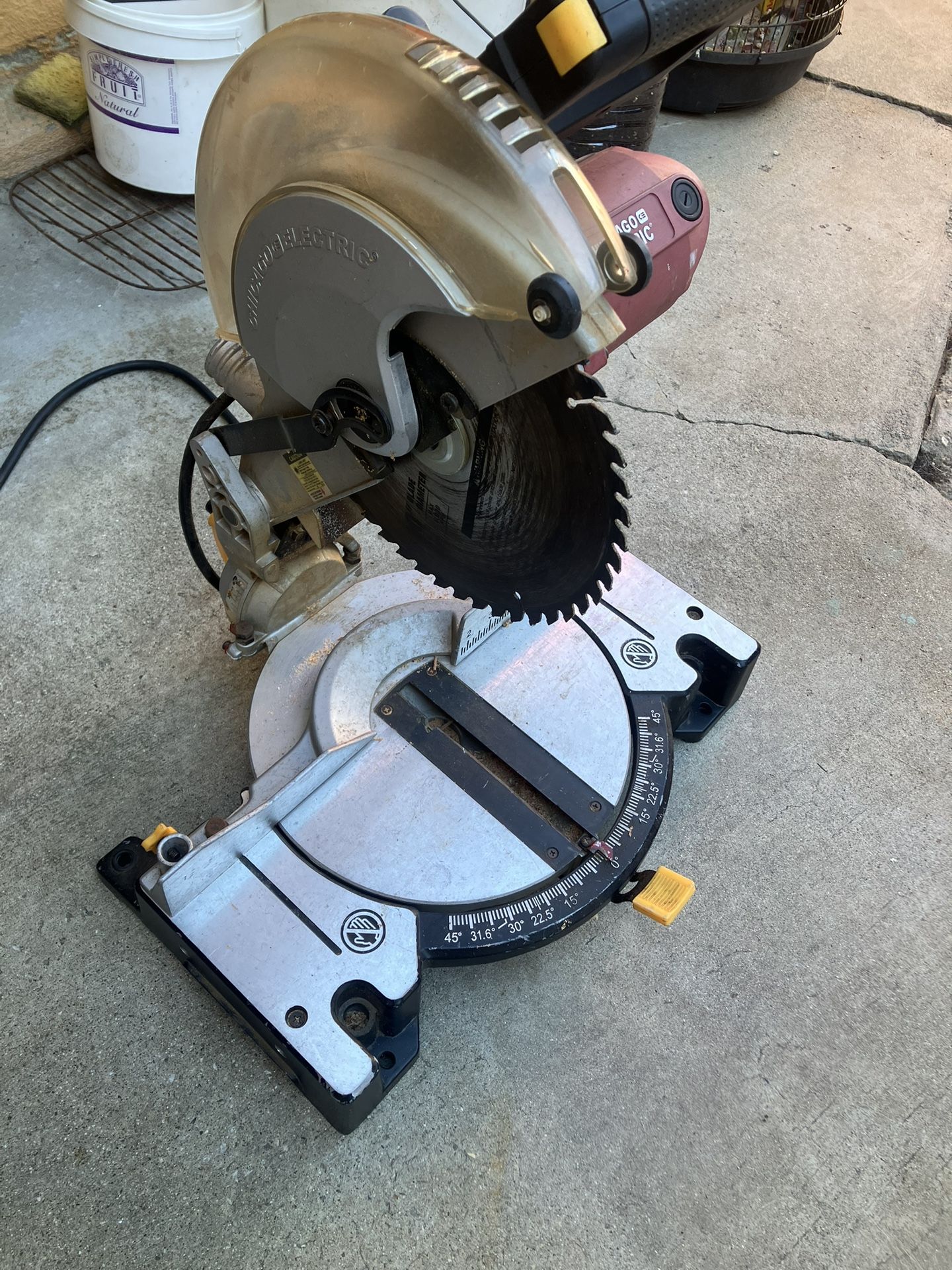 10in Miter Saw Take it. It was my uncle, passed away 6months ago. Works fine Funciona bien. Era de mi tío, pero falleció hace 6 meses