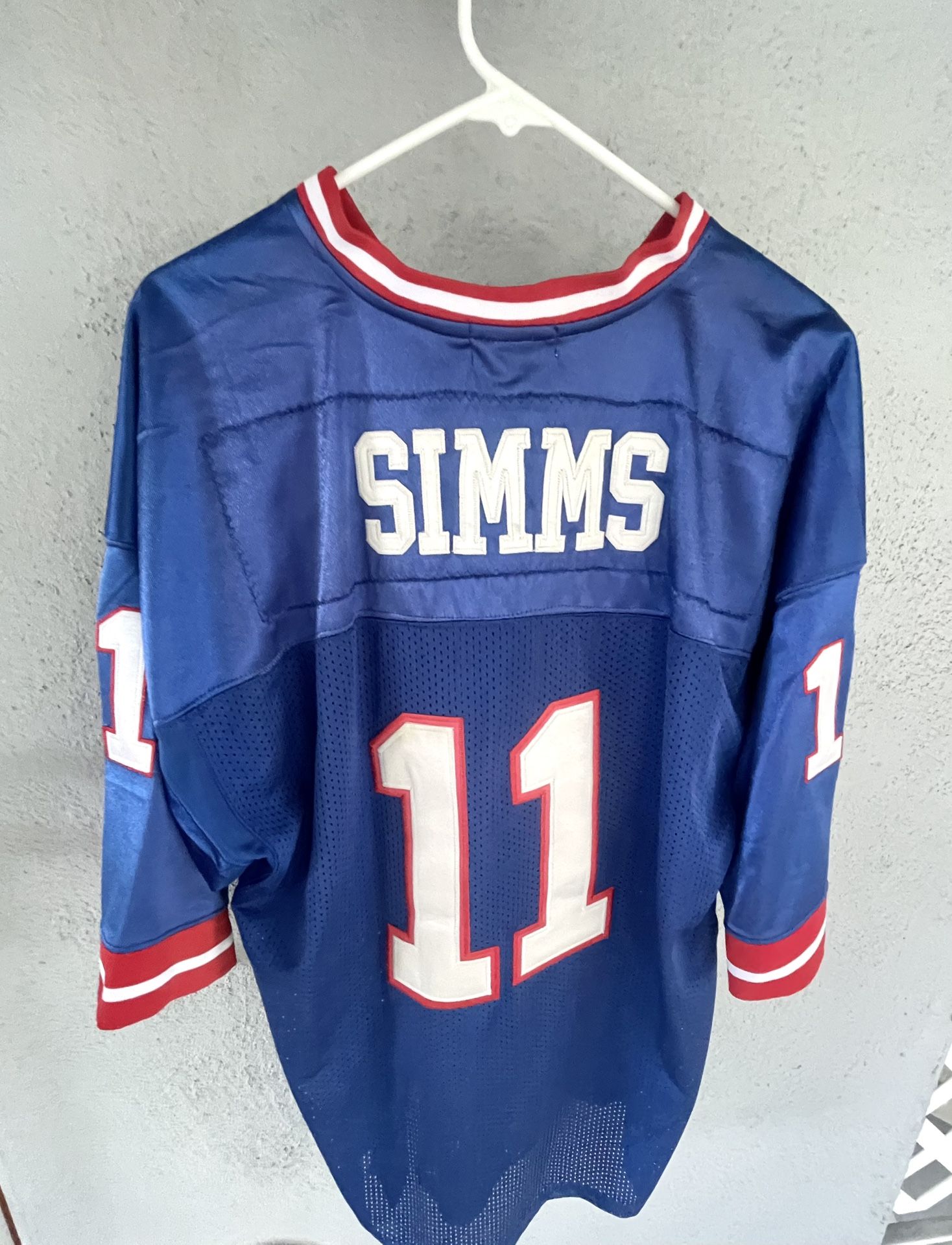 __ A+ looking Phil Simms New York Giants quarterback Jersey. Mitchel and Ness jersey. Size XL. No tears or stains. Spider 43 patch which was worn during their 1986 Super Bowl winning season