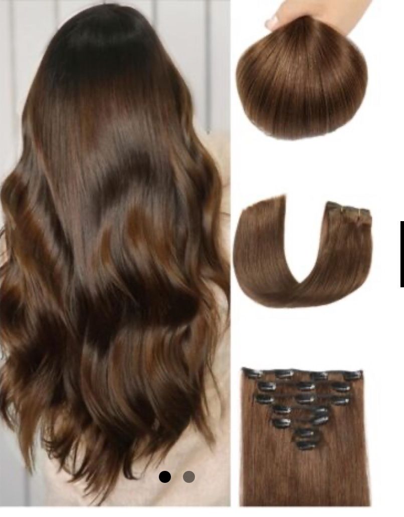 14" Clip on hair extensions!! (Synthetic hair like real) (Cash only) (medium brown color ) 1 extra large piece with 4 clips 1 large piece with 3 clips 2 medium piece with 2 clips (Cash only) (brand new