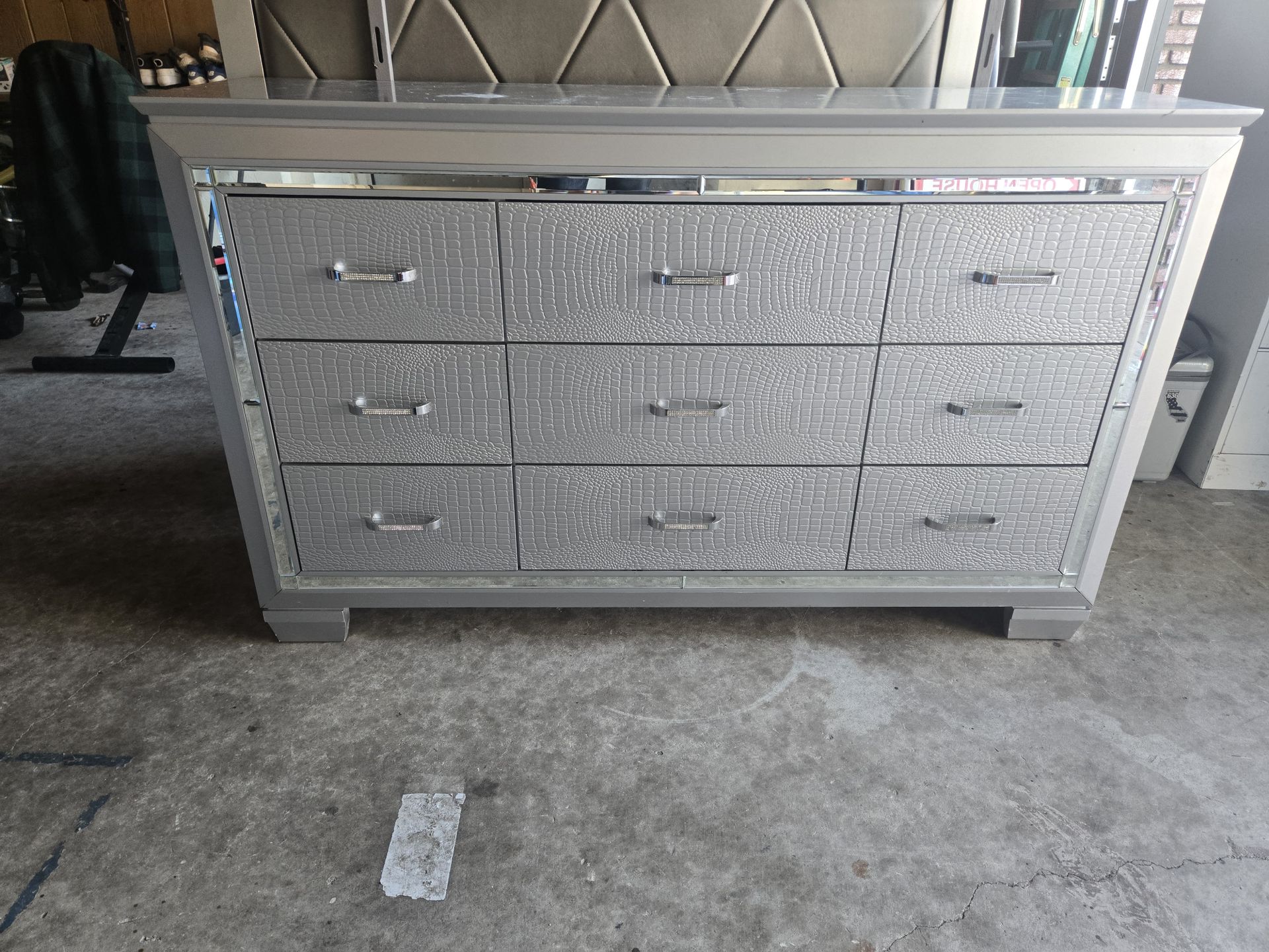 Grey dresser set with mirror and night stand