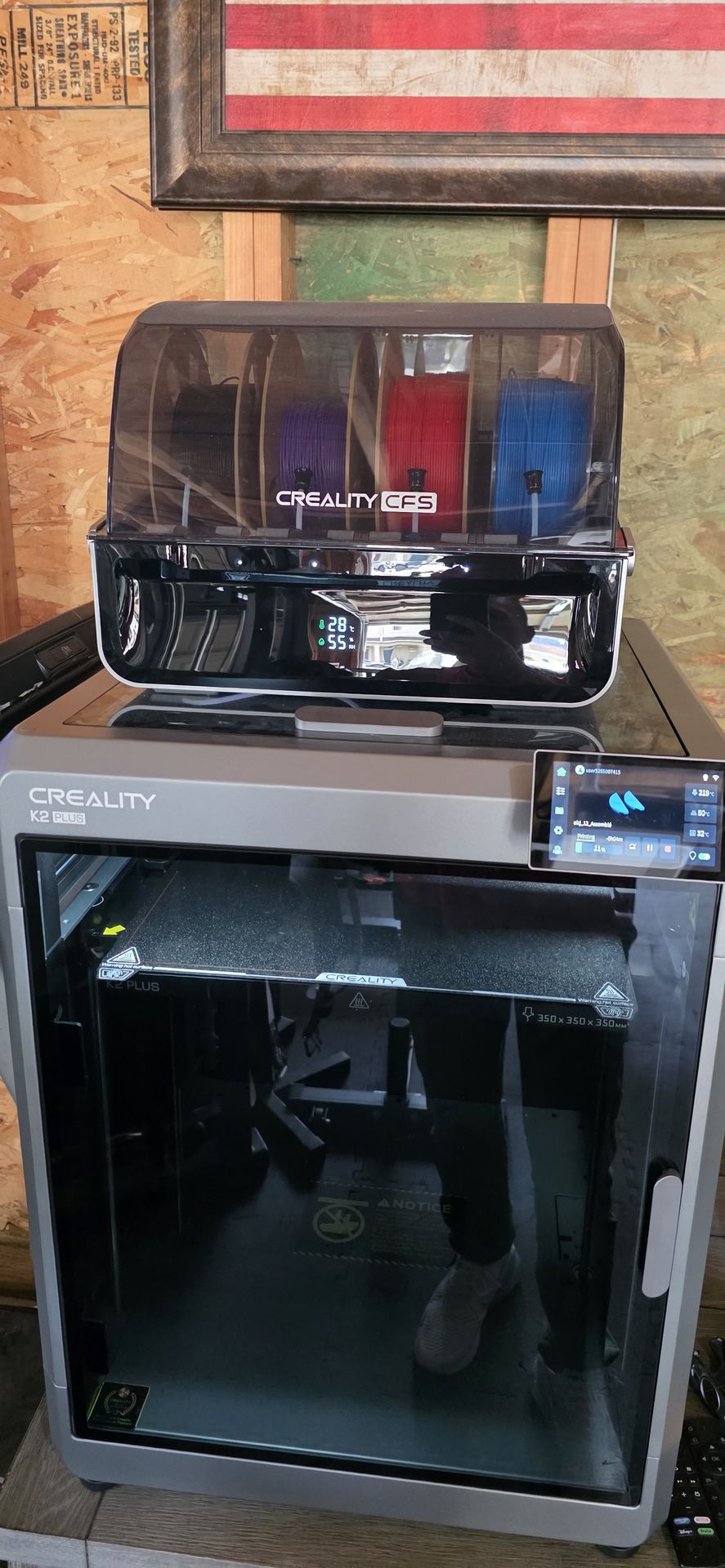 Creality K2 Plus Combo 3d printer -350x350x350 build plate, only 138 hours on it. Works perfect. No issues. Comes with: * CFS with 4 PLA filament * Brand new in box build plate * Brand new in box filament dryer * All cords and cables $1000 Pick up in Monterey.