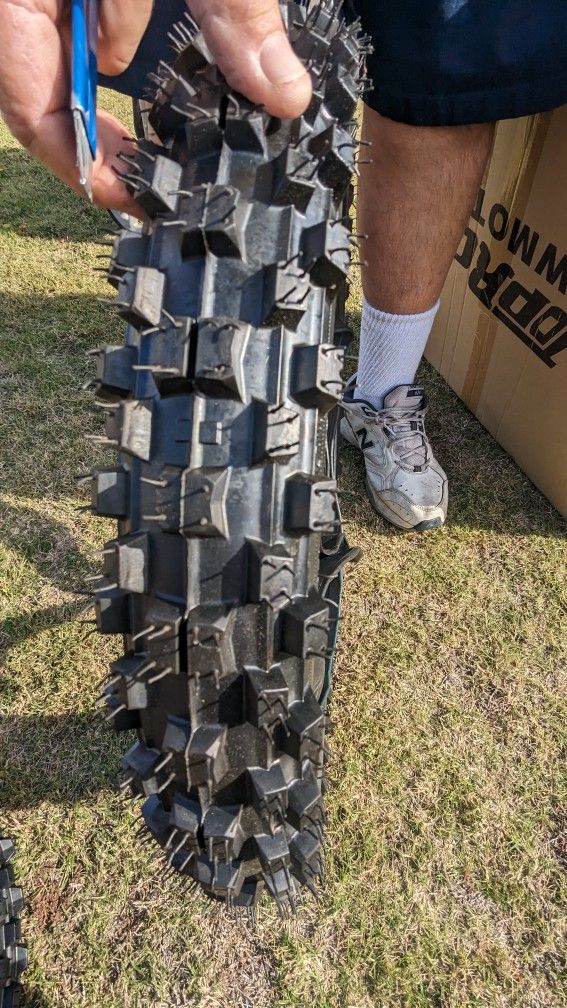 70/100 17" rims Goes to 1.60 standard rim Off road / Dirt tires In box with tubes Motorcycle