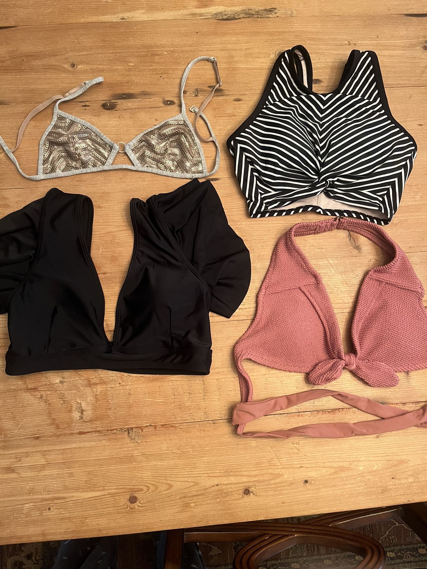 Small bathing suit tops, small, $5.00 each Top left corner gold top is sold