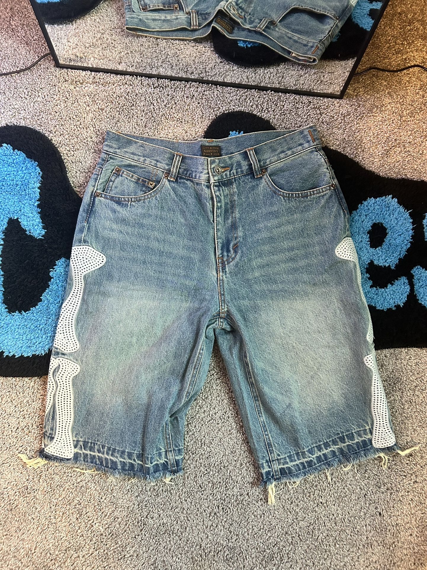 Brand new, they fit right just haven’t got to where them! I have picture of me trying them on with an outfit if needed let me know! denim shorts, distressed, high waist, light wash, casual, streetwear, baggy, relaxed fit, summer style, distressed edges