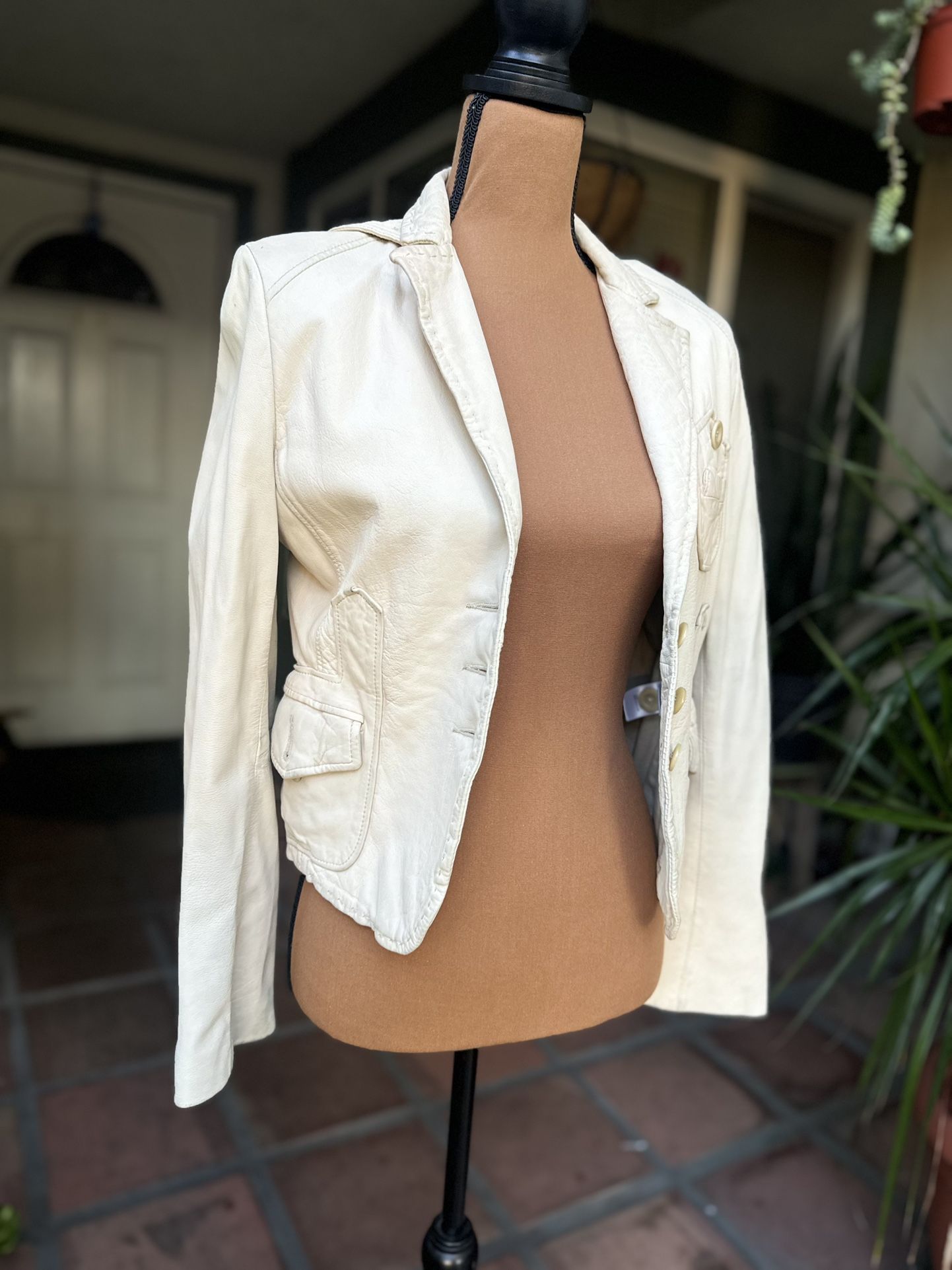 BCBG Max Azria Oyster White Soft Leather Jacket Sz. S