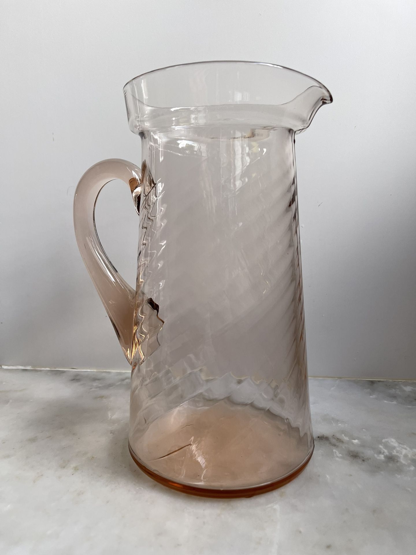 Beautiful Vintage Pink Swirl Depression Handblown Glass Pitcher 60oz Stands 10” tall Beautiful condition, no chips or cracks. Porch pick up Shipping available