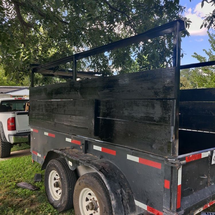 Got this 12 ft dump trailer for sale i added some angles to make it higher its about 7-8ft high Works good needs a battery And i replaced the back axel might need new tires on one side Asking x5500 $ OBO