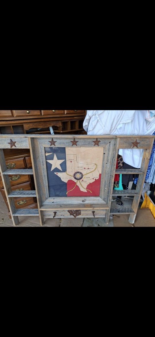 Texas Rustic Picture made in real wood has texas shape map with glass on top...Real nice picture..Ready to be stain the color of your chose... Asking 60.00