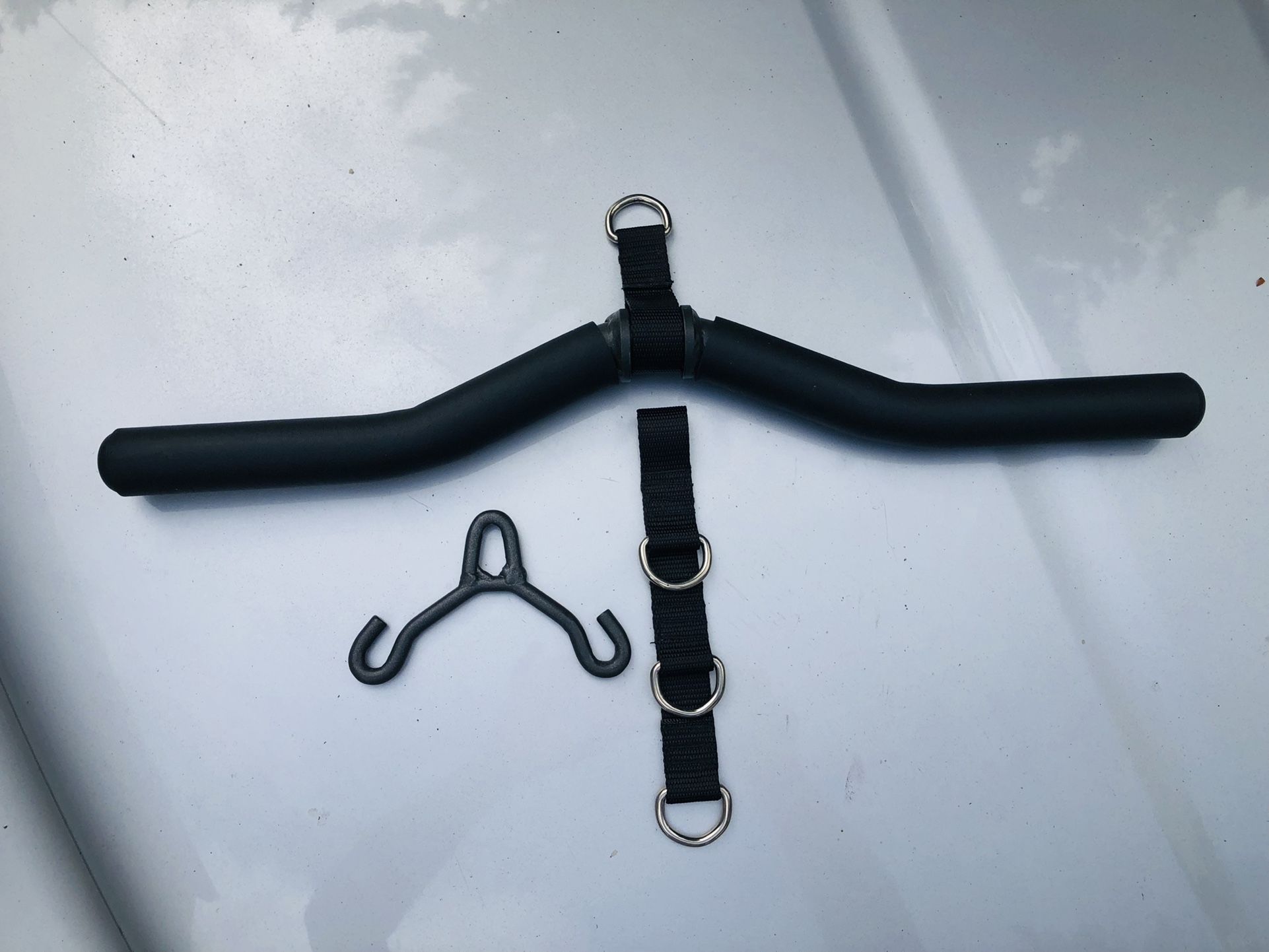 These are from a large premium in-home gym set. Can be used for other activities other than exercise. The bar was used a few times but but basically still new. Weights Stretch Balance Strap D-ring Hook Nylon Pull-up Rowing Triceps Back Shoulders