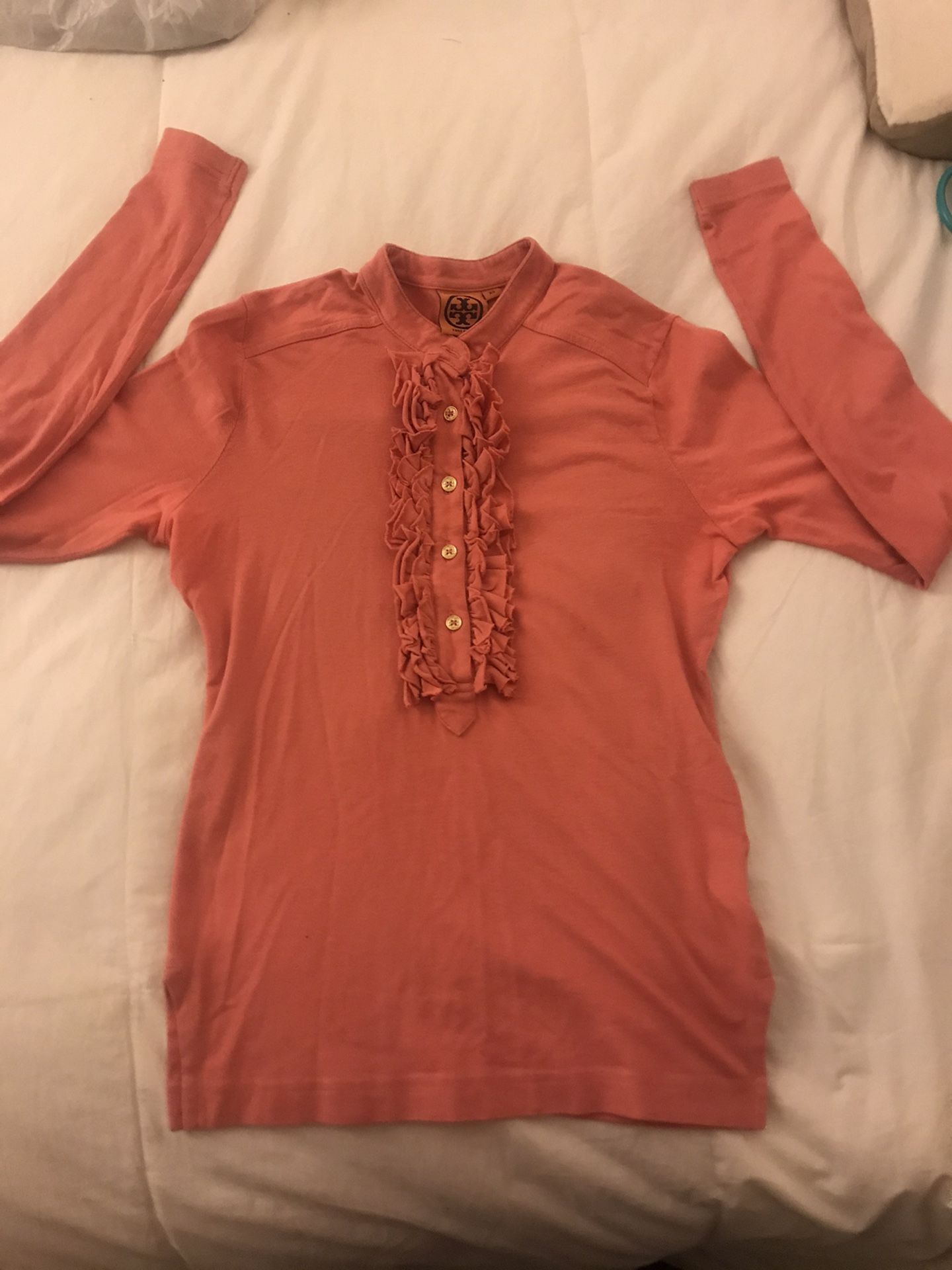 Authentic Tory Burch too. Has a tiny mark in the lower front part of shirt which I haven’t tried to remove. Still in great condition. Comes from smoke and pet free home