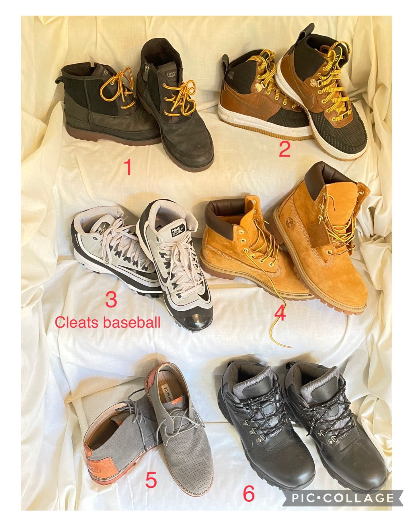 All shoes are in new/excellent condition. 1. Ugg Boots - Size: 5 - $40 2. Nike Lunar Boots - Size: 4.5 - $45 3. Nike Baseball Cleats - Size: 6.5 - $20 (worn half a season) 4. *NEW* Timberland Boots - Size: 6M - $45 5. Steve Madden - Size: 5 - $30 6. Deer stag Thinsulate Insulated Boots - Size: 5.5M - $20