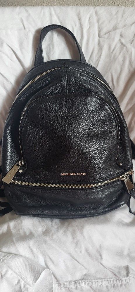 Michael Kors Rhea Black Leather Back Pack Silver Harware