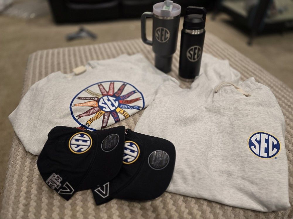 2 Hats Sweatshirt Hoodie SEC 40oz. Stainless Tumbler Stanley with Handle and Removable Straw SEC 26oz Yeti Rambler Bottle with Chug Cap
