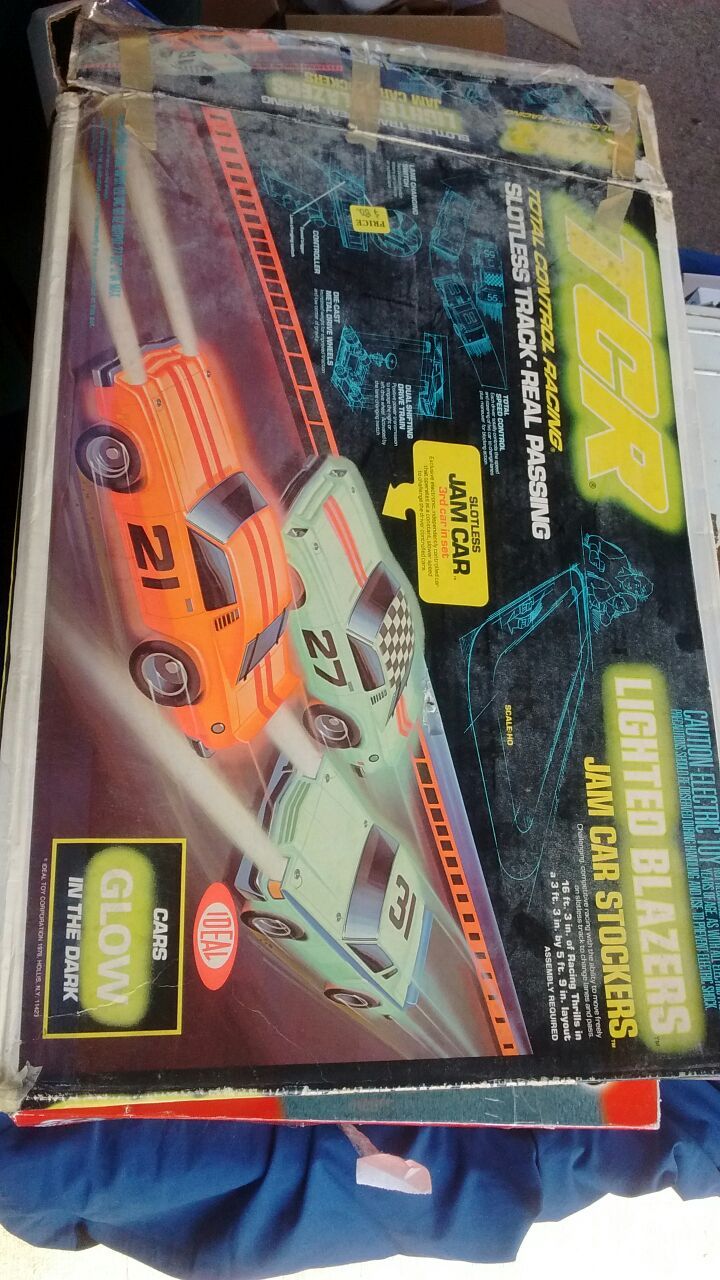 TRC track 1970 slotless racing track that we'll pass. This set comes with 6 cars in one extra car for parts. You can see this today at Booth 1 and two at West Allis Farmers Market.