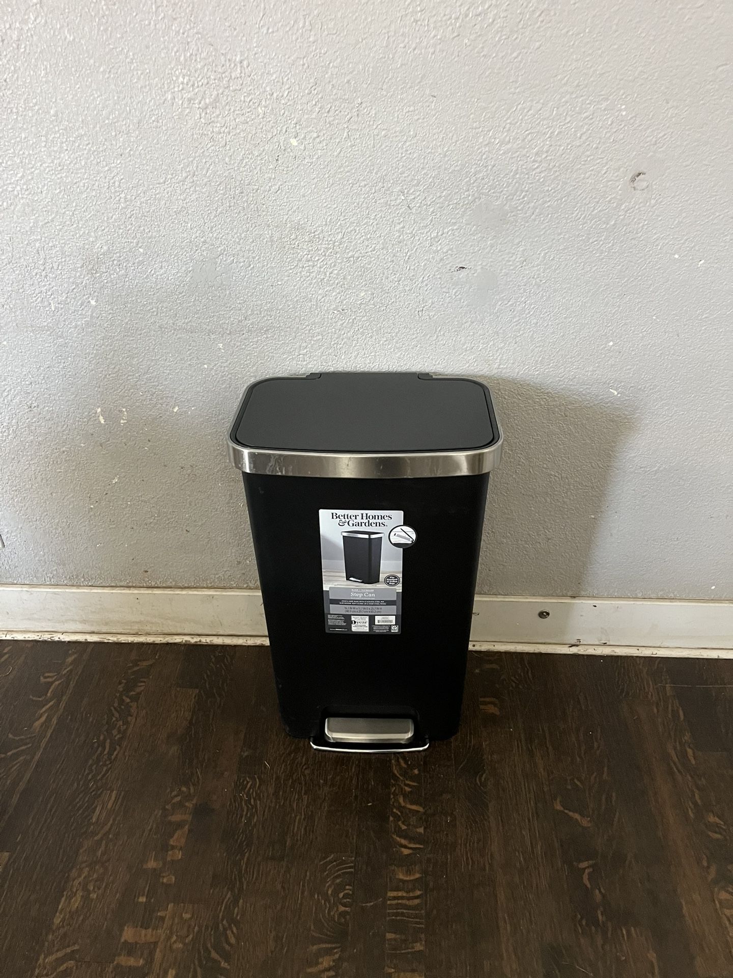 Better Homes & Gardens Kitchen Trash Can, 11.9 Gallon, Plastic Step-on Pedal Garbage Bin, Black