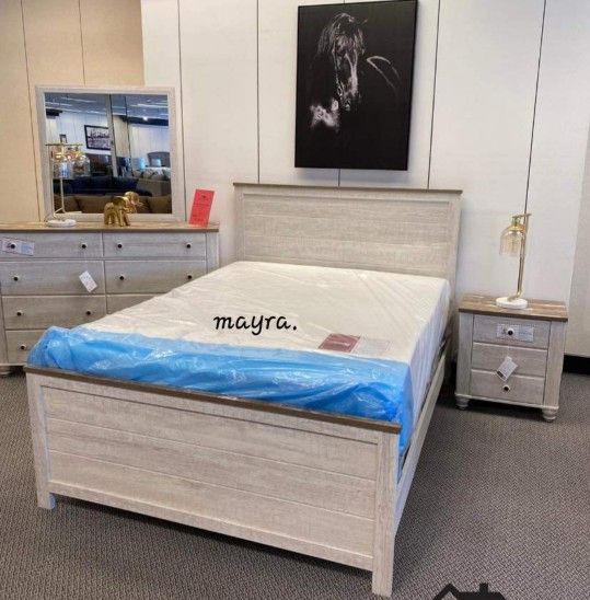 Nashville Antique White/Brown Panel Bedroom Set,bed,dresser, Mirror, nightstand Queen//king,full, Twin Size available
