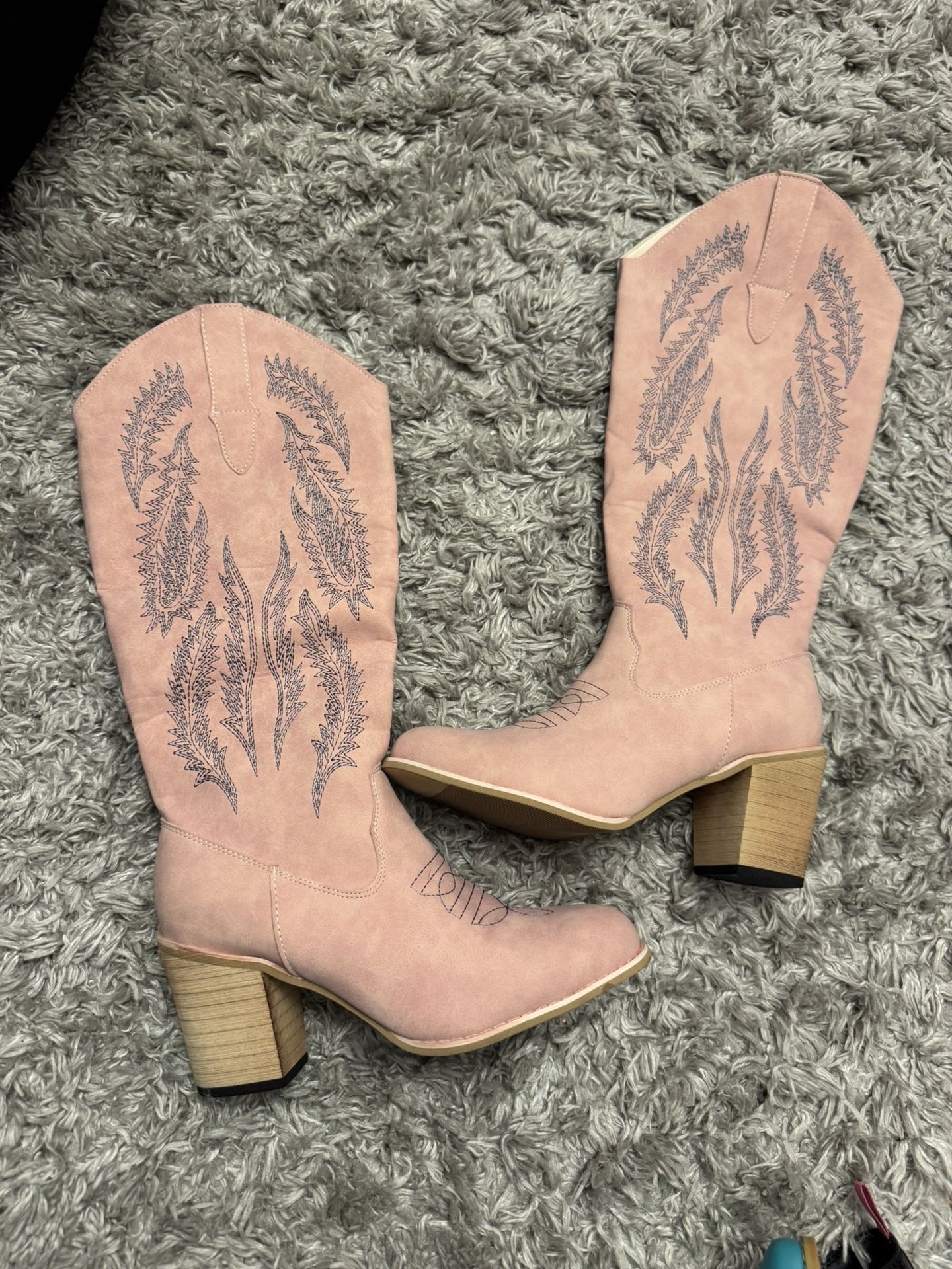 Cowgirl pink boots Size 5 New Western style Small marks on one boot not sure if it comes off See last picture