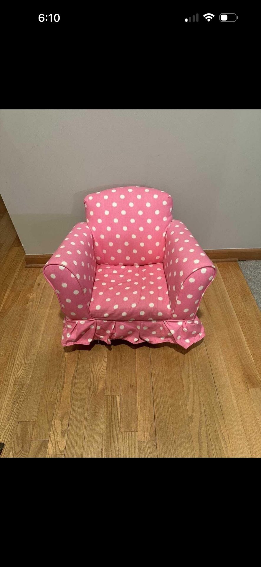 Cute pink Rocking Chair. Was put in our daughter room for decoration. Comes from smoke and pet free home . Price is firm. Porch pick up with cash only.
