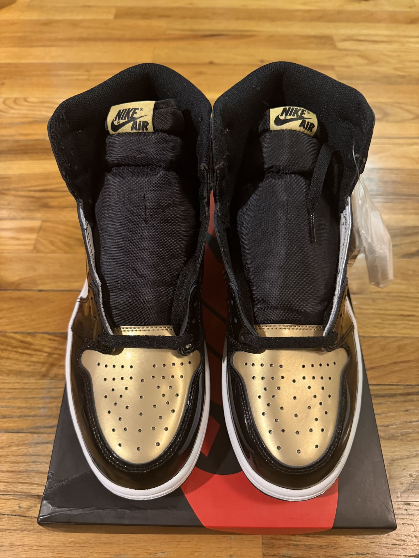 Brand new pair of Air Jordan 1 Retro High NRG “Gold Toe” size 10. Comes with all original packaging, 2 pairs of extra laces.