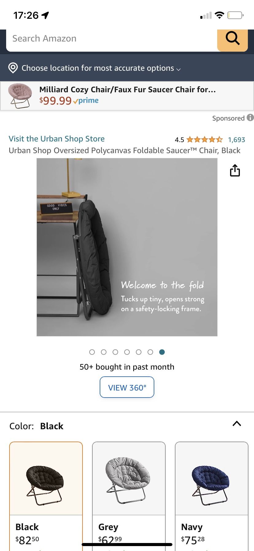 Urban Shop Oversized Polycanvas Foldable Saucer™ Chair