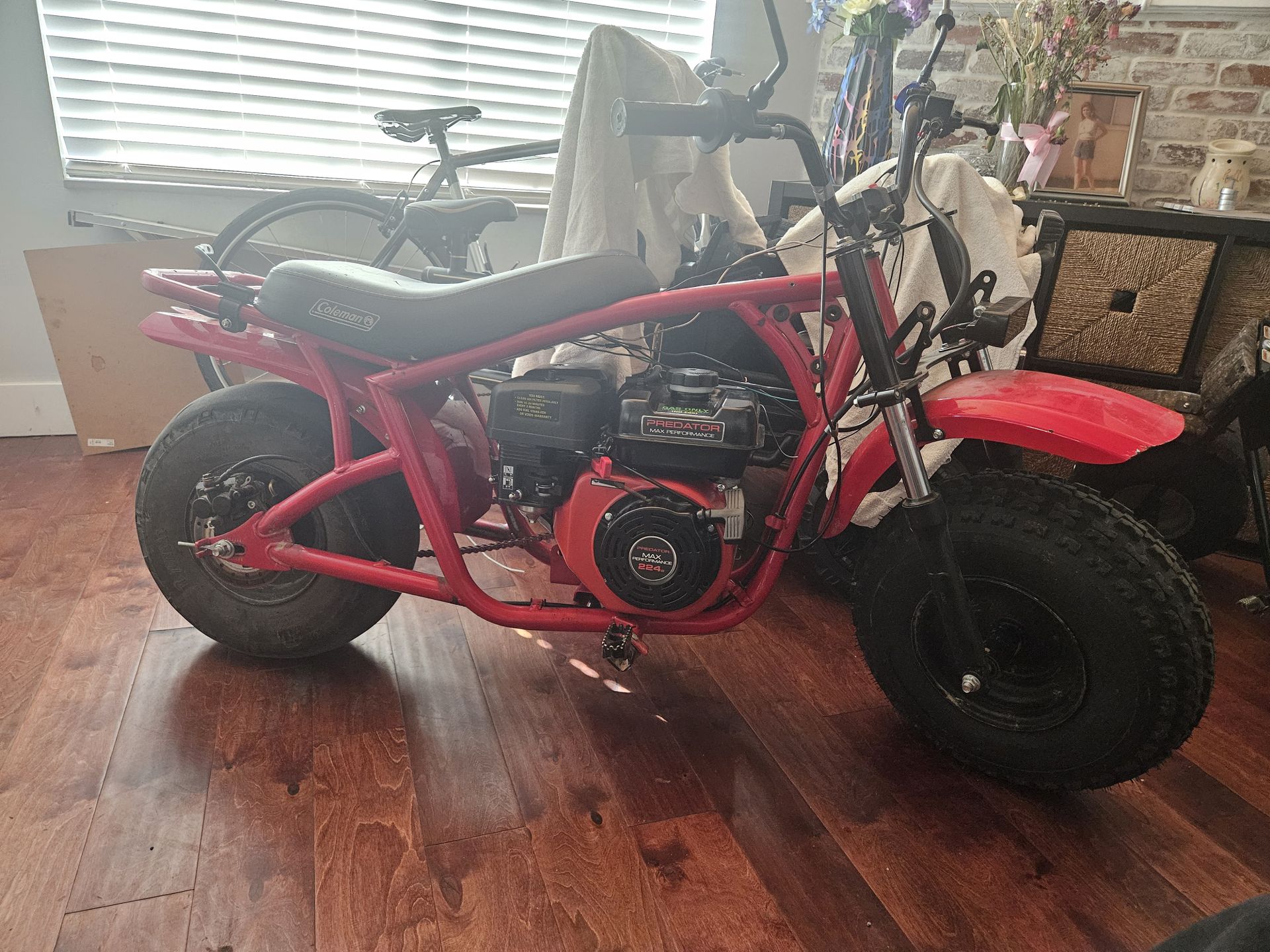 Brand new motor. Coleman B200. Motor is a 6.5 hp predator. Needs some dialing in, im not to familiar with mini bikes. Has some power the way it is now but if you get it dialed in rite it's gonna move. $600 OBO