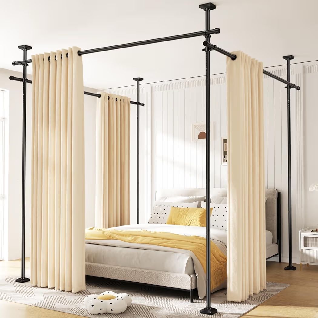 Room Divider Curtain Rod, No Drilling Wall Divider for Room Separation, 4-10ft(H) 28-171inch(W) Adjustable Heavy Duty Partition Space Separator Freestanding Tension Curtain Stand, Black