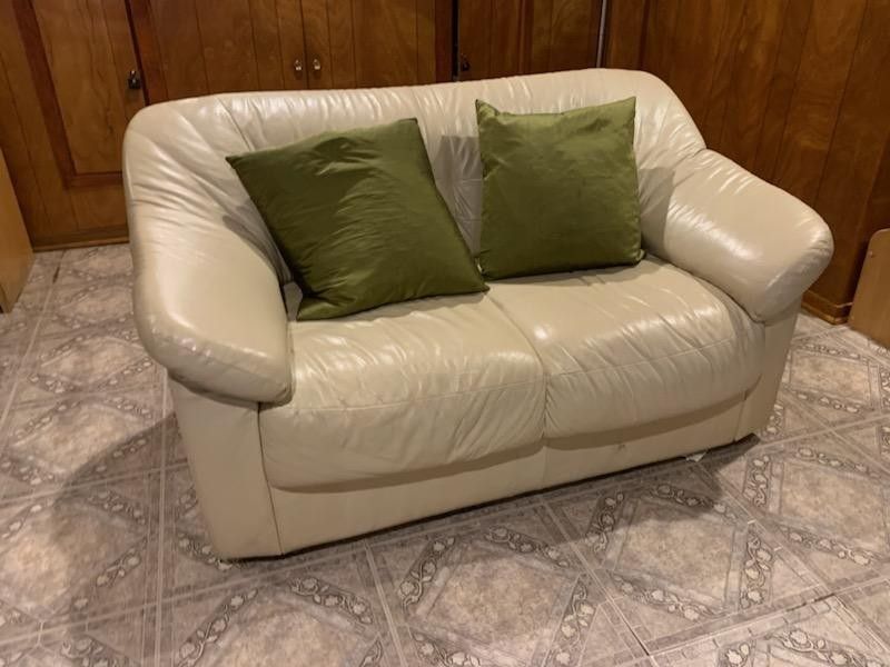 Genuine leather couches, excellent condition. Comfortable, no stains, tight leather. Love seat is 55'x35' Large couch 77'x35'
