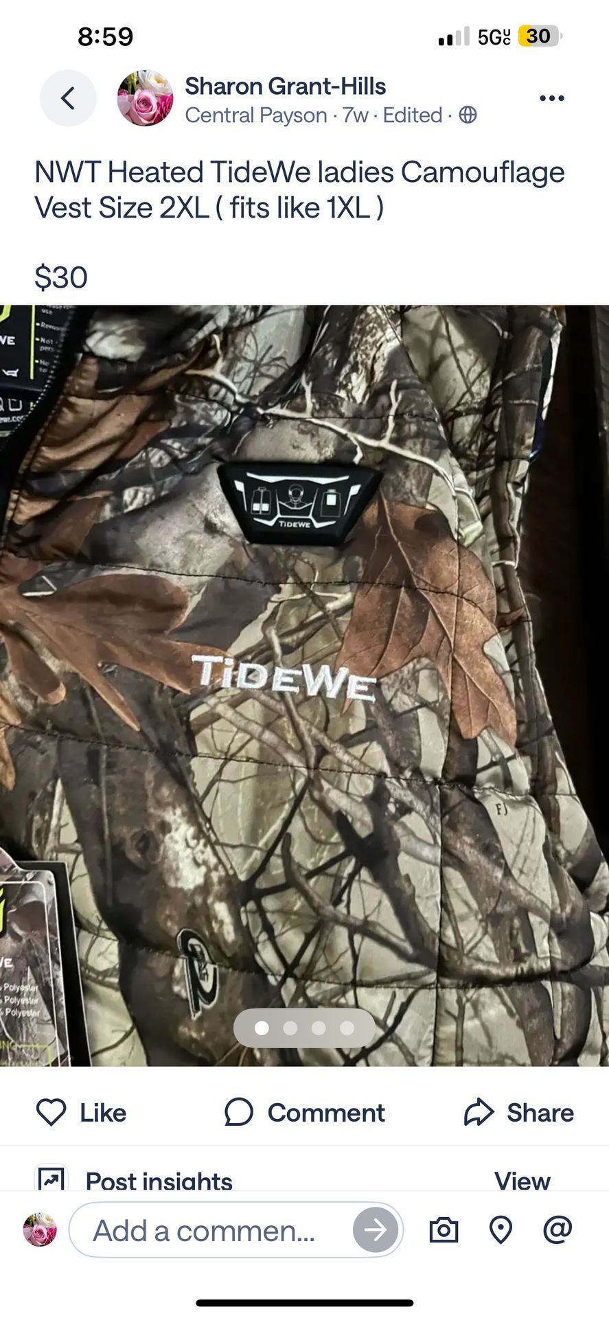 This is a camouflage heated vest in size 2XL, but fits more like a 1XL. NWT, pick up in Payson.