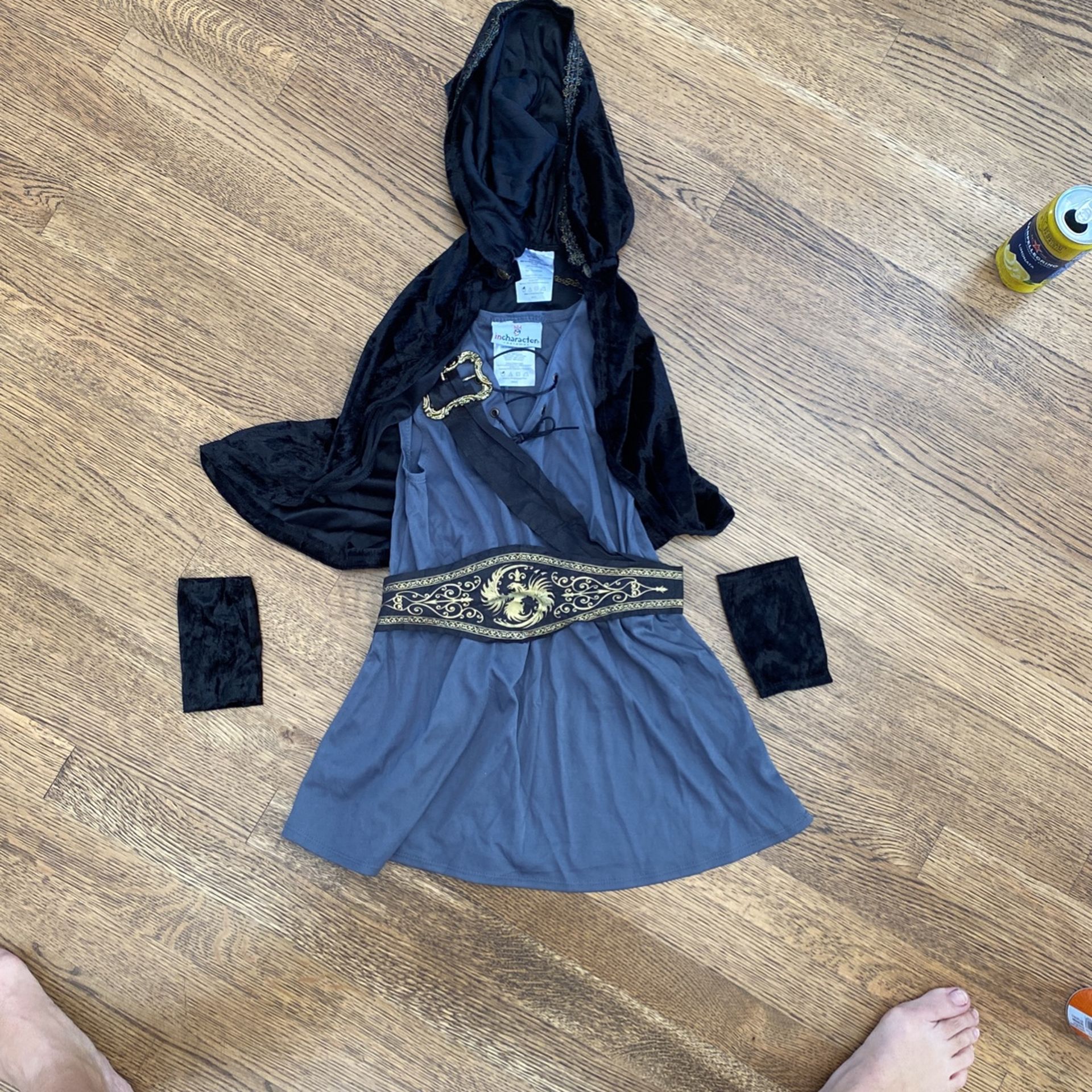 Child size small hunger games style costume includes tunic and cloak. Five pieces total including the accessories which are wristbands and a fabric belt. Bow and Arrow not included (posting several other costumes as well)