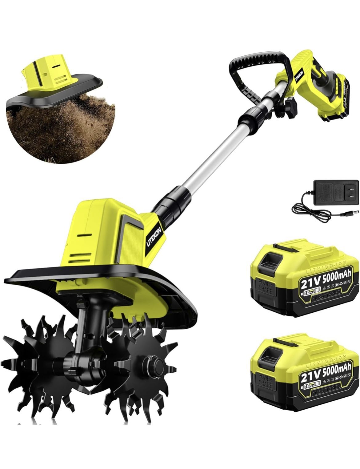NEW - Powerful Cordless Tiller Cultivator with 720RPM Brushless Motor, 2x5.0Ah Batteries&1.5A Fast Charger, 10In Tilling Width and 7In Depth, Super Po