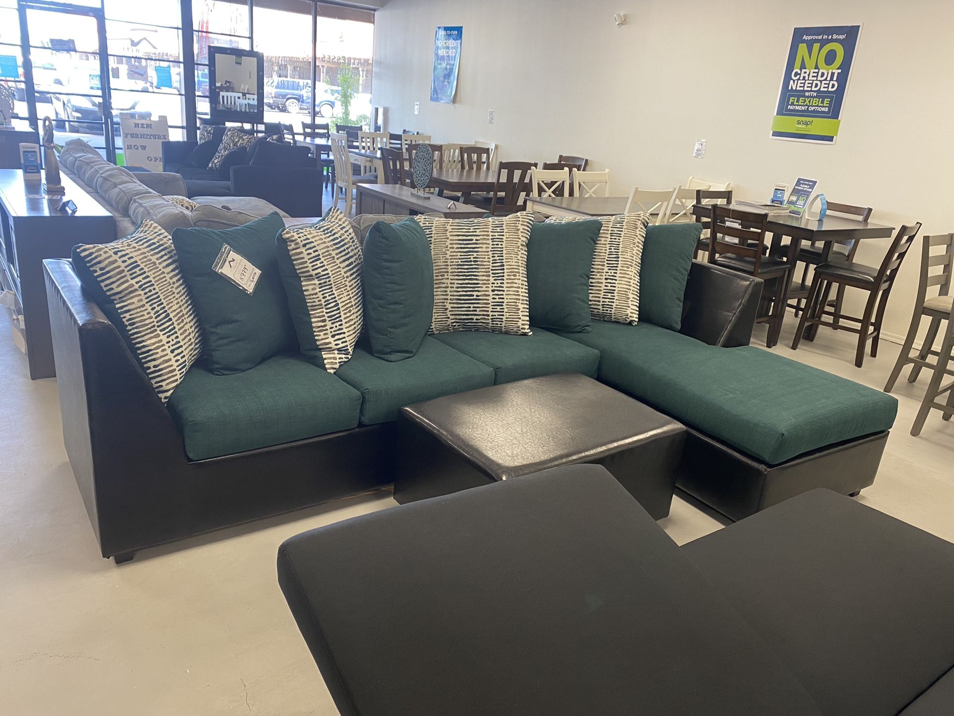 comfortable sectional with designed pillows¡¡NEW!! ‼️Take it home with only $39 easy approval ‼️ 100 days same as cash no interest ‼️Easy approval ‼️ Come pick up or ask for delivery 🚚 Completamente nuevos Ven por el o pregunta por tu entrega 🚚