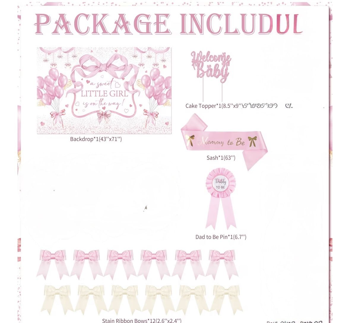 $10 Backdrop Cake topper Sash & dad to be pin Banner & some bows for decor