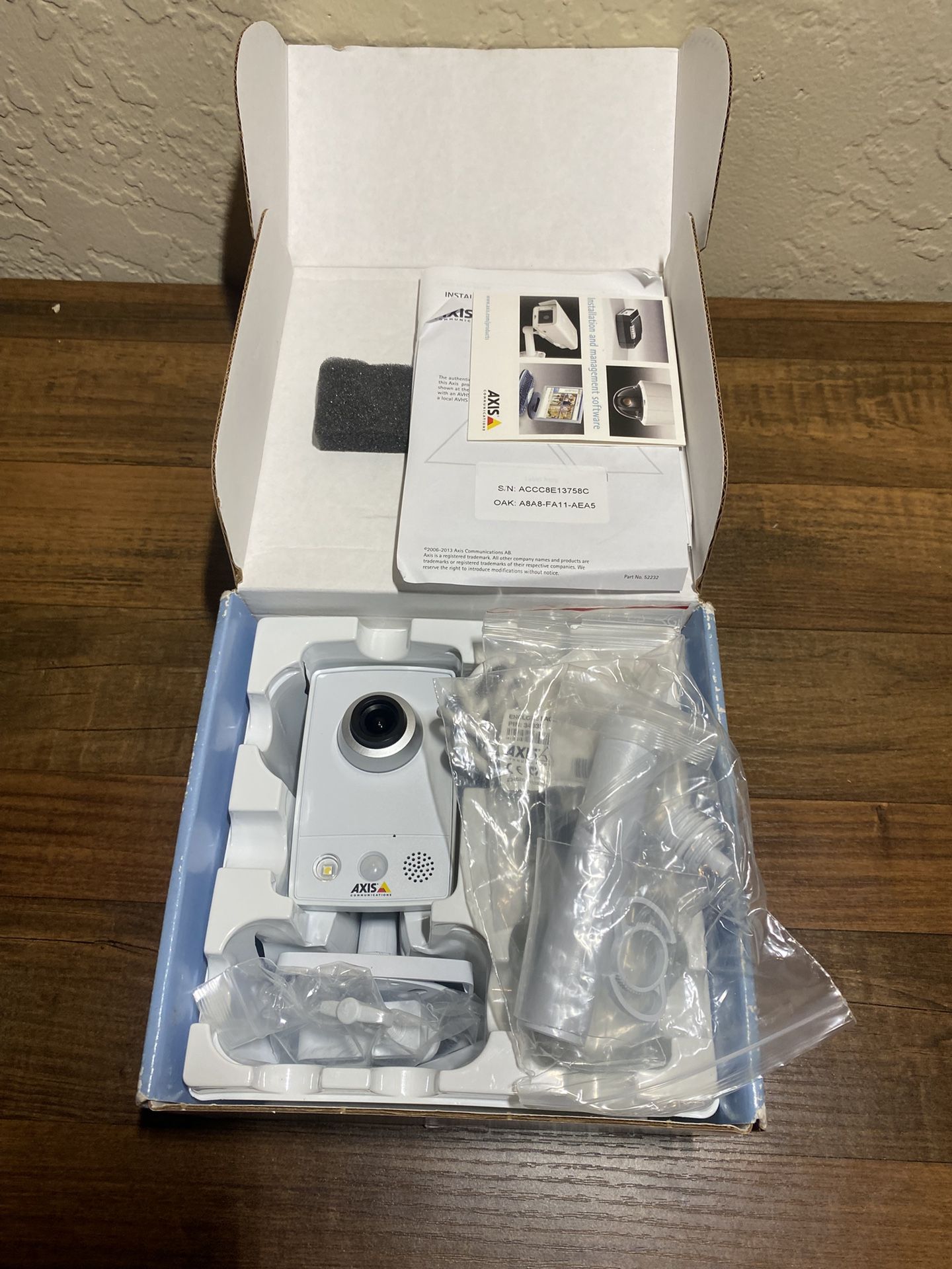AXIS M1054 Network Camera (M10 Series) in original box. Perfect for home or small business surveillance. • HD video quality • Built-in microphone and speaker • Motion detection • Easy network setup • Compact indoor design Box shows some cosmetic wear but camera is in good condition. Cámara de red AXIS M1054 (Serie M10) en su caja original. Ideal para casa, oficina o negocio pequeño. • Video en alta definición (HD) • Micrófono y bocina integrados • Detección de movimiento • Fácil conexión a red • Diseño compacto para interior La caja tiene algunos detalles estéticos, pero la cámara está en buen estado.